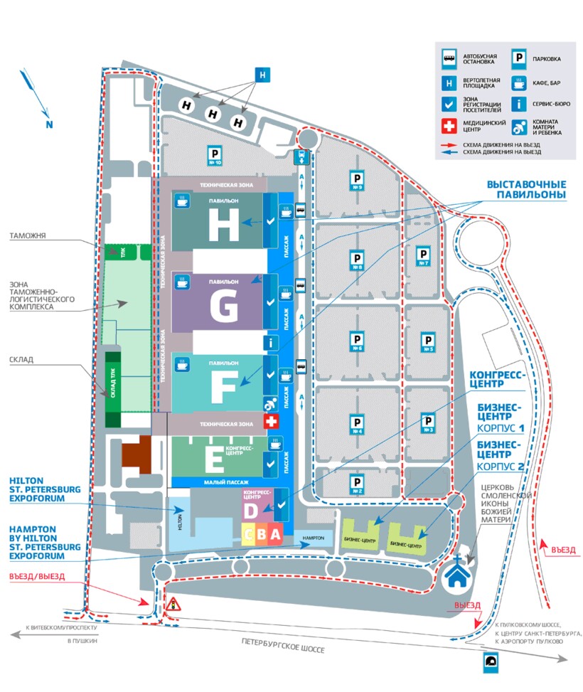 Добраться до КВЦ не тяжело. Ехать можно на собственном автомобиле или такси, также ходит маршрутка в «Экспофорум», а для каждого мероприятия предусмотрен бесплатный шаттл.