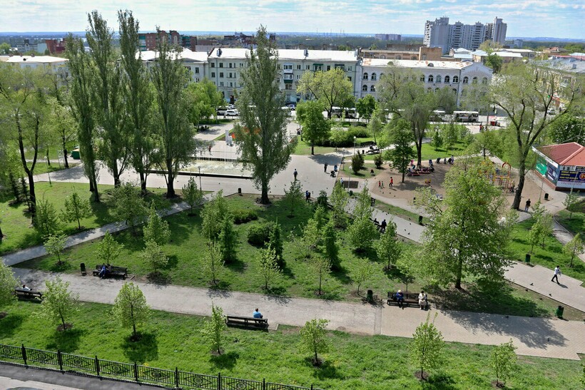 - Сквер Высоцкого — идеальное озелененное место для прогулок с детьми. Здесь есть удобный газон, детская площадка, скамейки, прикормленные голуби и бесплатный туалет. В сквере поддерживается чистота.