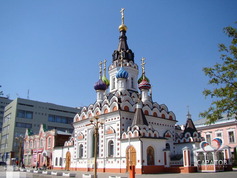 Возведен в начале 20 века. Находится в самом центре города, напротив консерватории. Красочному и изящному оформлению куполов позавидовал бы сам Гауди. Храм пользуется популярностью у приезжих, здесь также работает первая открытая в Саратове воскресная школа.