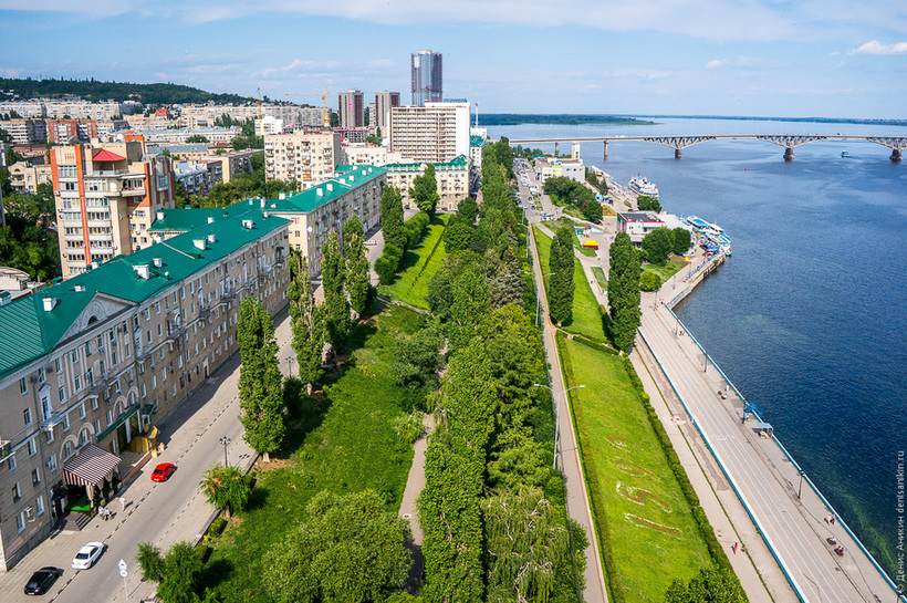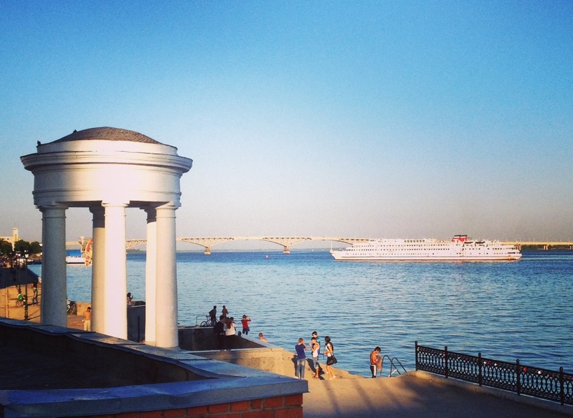15.00 — через сквер «Липки» выходим к улице Волжской и по ней спускаемся к Набережной космонавтов. Есть время совершить моцион перед закатом солнца. Отличные виды на вечернюю Волгу со всех ярусов Набережной. Слева и справа — несколько километров вдоль Побережья. Пообедать можно здесь же. А чтобы обед не накопился в боках, на набережной можно взять напрокат велосипед и совершить прогулку верхом на двухколесном друге.