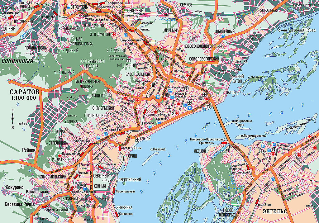 В списке популярных карт можно посмотреть карту Саратова на русском с достопримечательностями. Для скачивания карт достаточно щелкнуть мышкой по изображению.