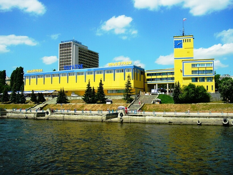 Речной вокзал, построенный ленинградскими архитекторами в стиле модернизма, принял первых пассажиров в 1969 году. В комплексе со зданием была возведена причальная стенка протяженностью 0,5 км, включавшая 8 причалов. После упразднения советского государства флот большей частью был распродан, а с эпохой приватизации вокзал перешел в частные руки. Сегодня в здании размещается магазин бытовой техники.