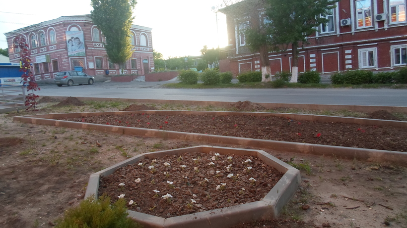 Видно, что территория активно благоустраивается с применением модных фишек в виде мигающих огоньков и чудных скамеек. Ну, а что? Вполне так себе цивилизованный центр маленького городка.