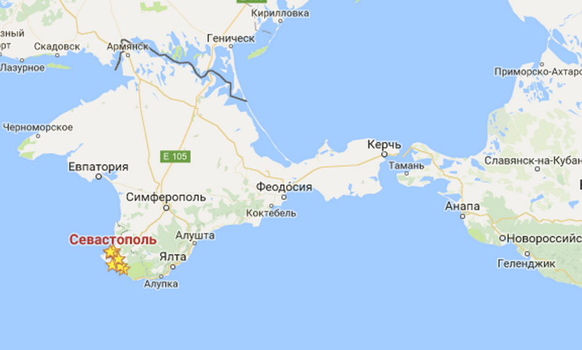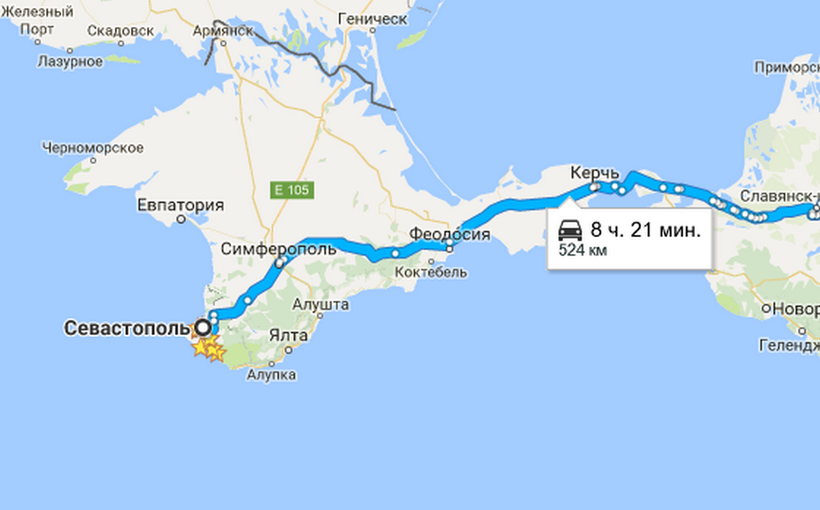 После переправы в Керчи необходимо выехать на трассу Е-97 и следовать по ней порядка 210 километров до Симферополя. От столицы Крыма еще около 90 километров следует проехать по дороге Н-06.