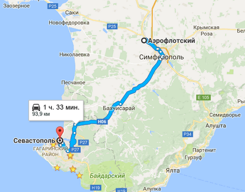 Доехать до Севастополя можно и на такси. Их стоянка находится возле центрального входа в аэропорт, стоимость проезда в среднем за автомобиль будет составлять порядка 2 500 рублей. В этом случае в дороге придется провести не более 1,5 часов.