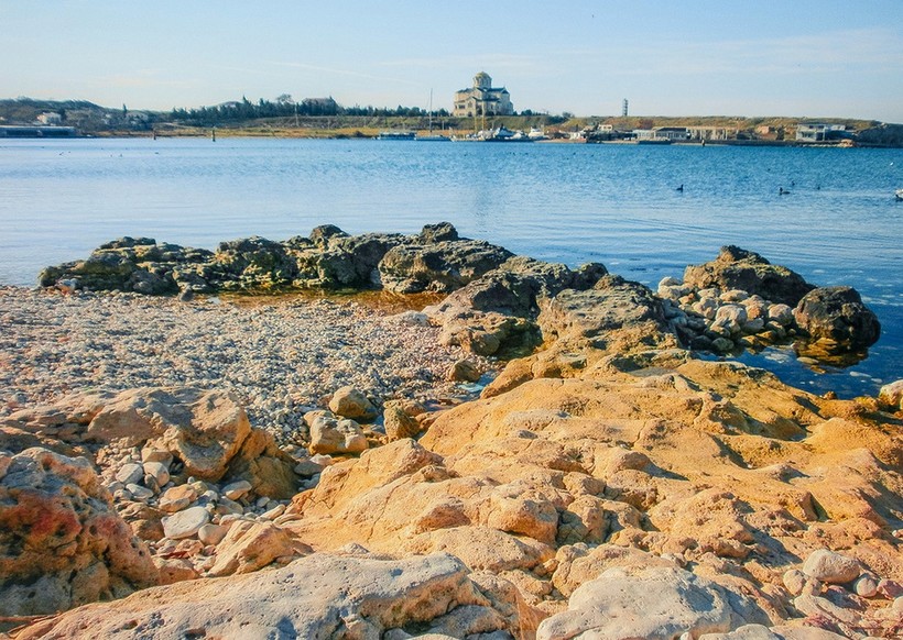 Я бы отметил и то, что в этом месте перед глазами открывается потрясающая картина на всемирно известный музей под открытым небом «Херсонес Таврический», о котором я писал в одном из своих предыдущих очерков. В Карантинной бухте есть достаточно удобный дикий пляж, который среди местных именуется «скалки». Более того в ее центре расположена часть ракетных катеров Черноморского флота РФ, что еще больше придает, как я считаю, пикантности этому месту.