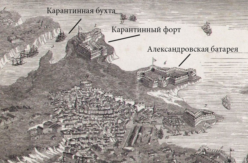 В середине 19-го века на восточном берегу Карантинной бухты размещалась артиллерийская батарея, задача которой состояла в защите порта со стороны моря.