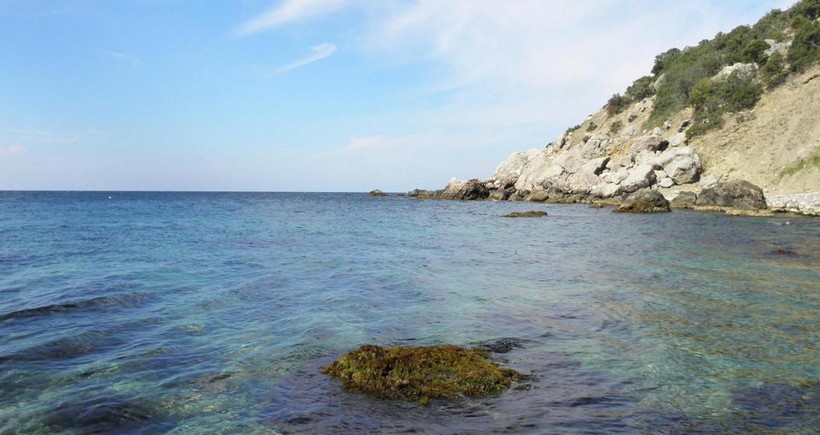 Немногочисленные пляжи, расположенные на склонах мыса, имеют неудобный подход и состоят из крупной гальки и валунов. Особенно хочу отметить непередаваемую прозрачность воды, которая здесь несколько холодней, чем в соседних бухтах.