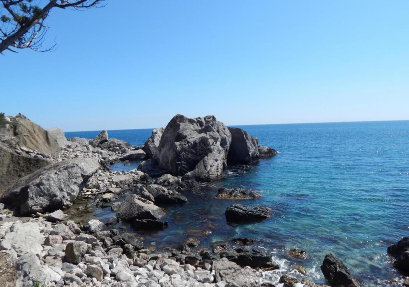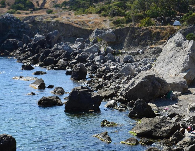 Мне больше понравился основной пляж, который находится по центру мыса. На его территории тоже хватает каменистых валунов, однако есть и удобные галечные подходы к воде.
