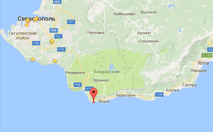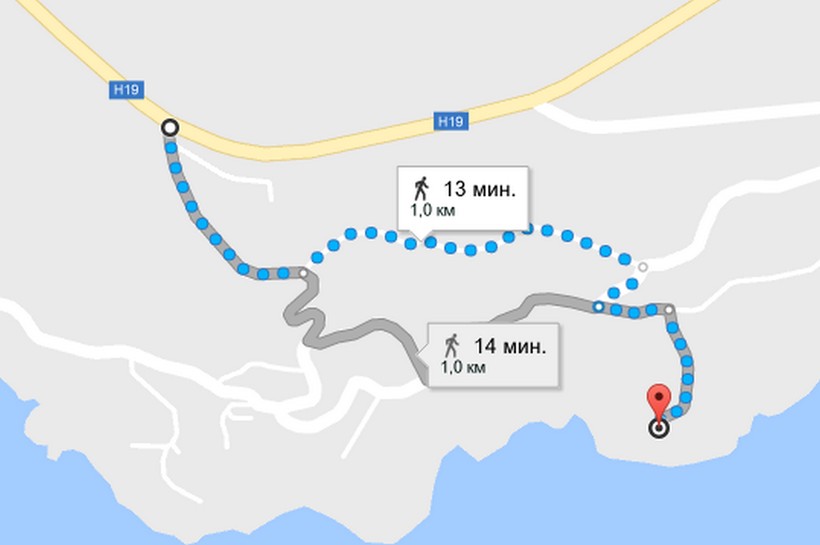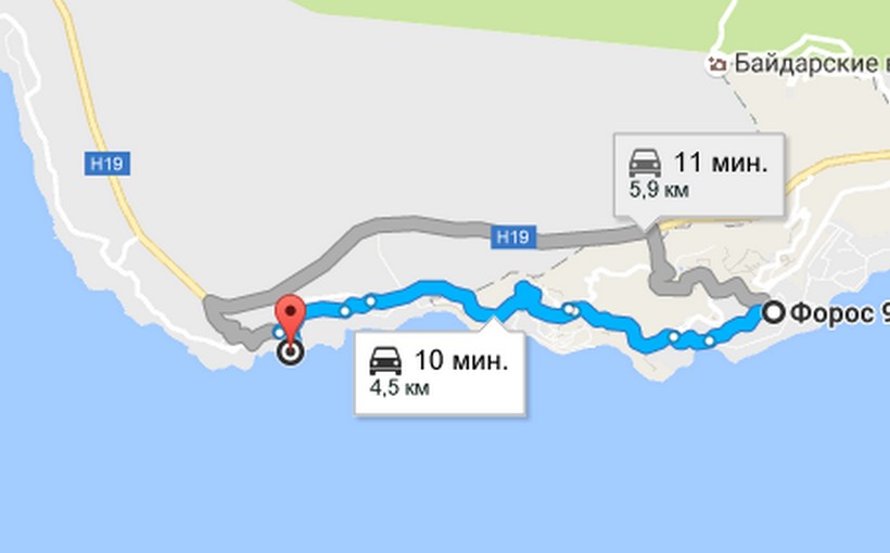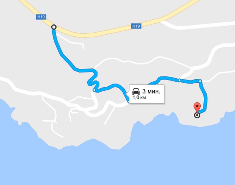 За поселком Форос необходимо будет с шоссе повернуть налево и по извилистой асфальтированной дороге спустится к морю. Ориентиры поворота, как и сама дорога, подробно описаны чуть выше.