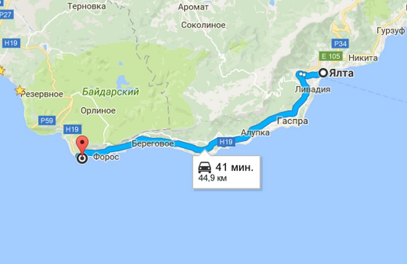 Ближайший медпункт и продуктовый рынок с магазинами есть в поселке Форос, который находится примерно в пяти километрах от мыса Сарыч. Добраться туда можно пешком, и в этом случае придется около получаса путешествовать по извилистой тропинке. Более удобный способ попасть в населенный пункт – это подняться на трассу и сесть на любой автобус, идущий в направлении Ялты.