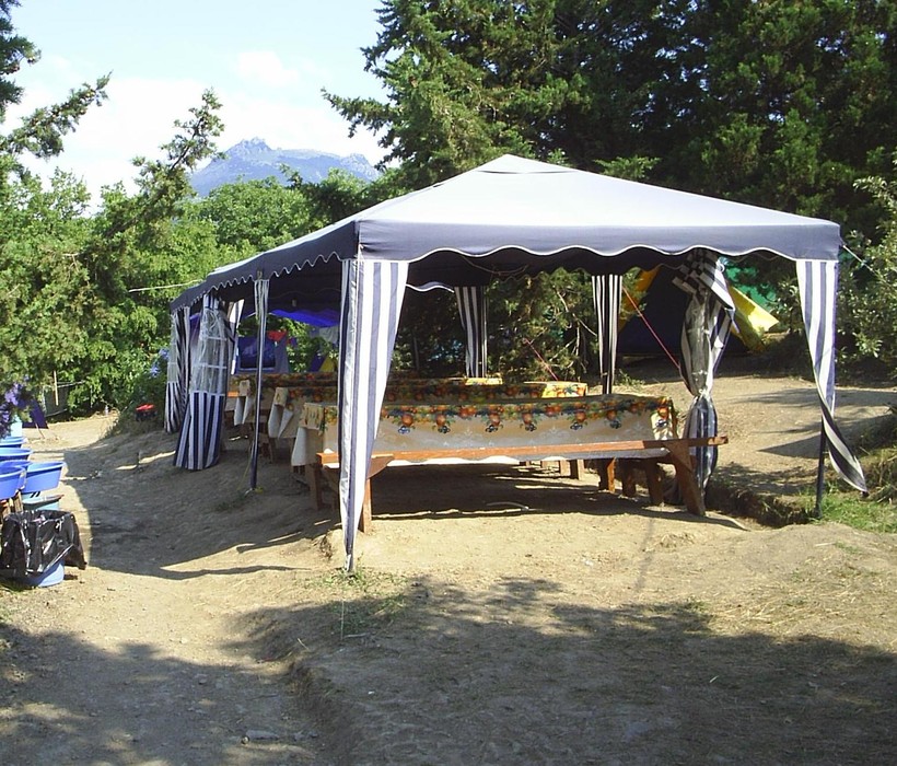 За отдельную плату вам предложат необходимое количество мест в палатках, мангалы, уютные деревянные беседки со скамейками и столиками. Есть несколько биотуалетов и душ. Цены, как по мне, вполне доступные: