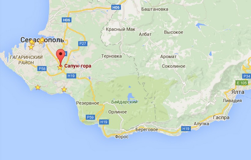 Комплекс Сапун-гора расположен на Ялтинской трассе в шести километрах от Севастополя и в 75 от Ялты.