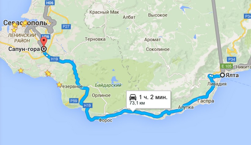 До мемориального комплекса из Ялты придется преодолеть порядка 75 километров. На это уйдет не менее полутора часов.