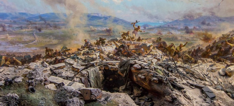 Более подробно прочитать о Диораме и ее экспозиции можно в моем очерке. Внутри музея при помощи живописных хитростей, некоторых интересных технических приемов и предметного плана создается эффект реального присутствия зрителя во время штурма советскими войсками высот Сапун-горы 7 мая 1944 года.
