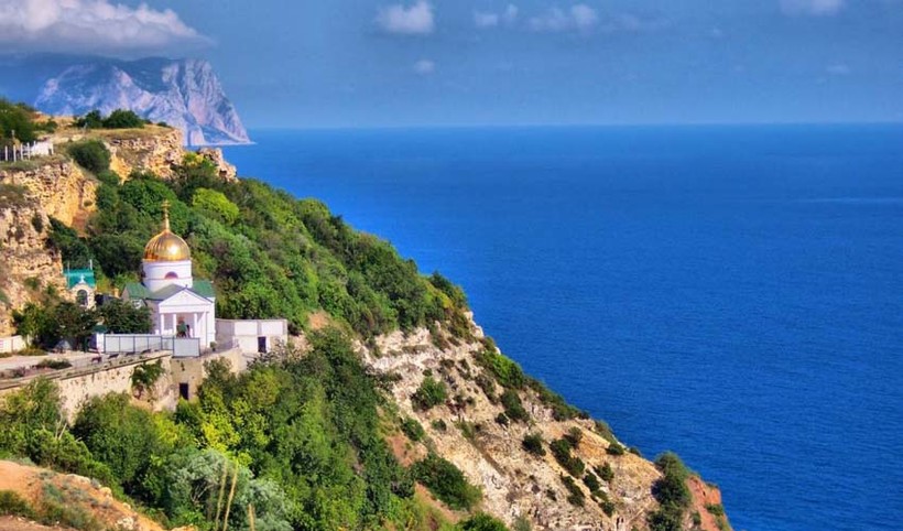 Рядом с территорией монастыря проходит лестница к, пожалуй, самому знаменитому пляжу на Фиоленте. Спускаясь по извилистой тропе и пройдя 800 ступенек, попадете на чудный Яшмовый пляж. Для тех, кому здоровье не позволяет пройти столь тяжелую тропу, ходит городской катер из Балаклавы к пляжу Яшмовый. И стоит недорого — 200 руб. Так что можете спуститься к пляжу с Фиолента, и на катере вернуться в Балаклаву.