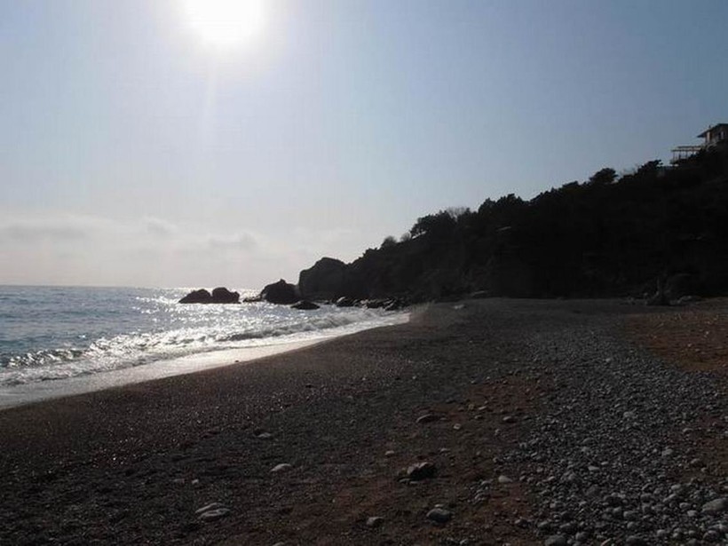Это лесистое побережье с реликтовой можжевеловой рощей начинается у основания горы Куш-Кая и простирается вплоть до чистейших вод бухты Ласпи. С правой стороны от него величественно выдвигается в море мыс Айя, а с левой своими скалами от ветров закрывает мыс Сарыч, об отдыхе на котором я писал в одном из своих предыдущих постов.