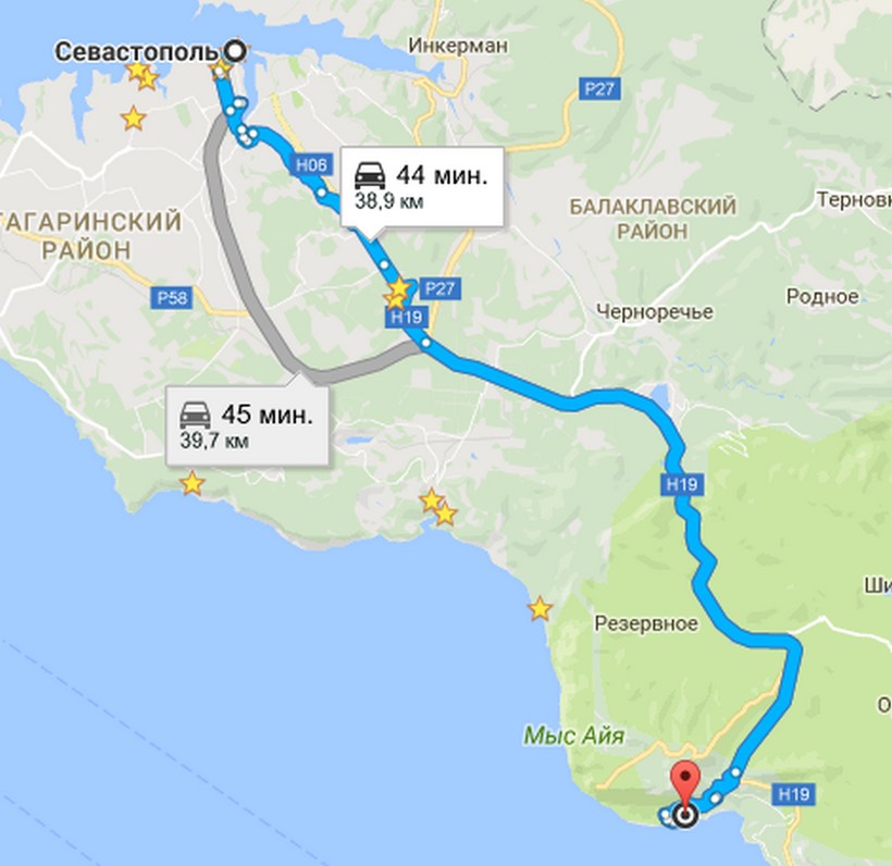 Выходить следует на остановке «Бухта Ласпи», далее необходимо около трех километров по извилистой асфальтированной дороге спуститься вниз к бухте, и вы на месте.
