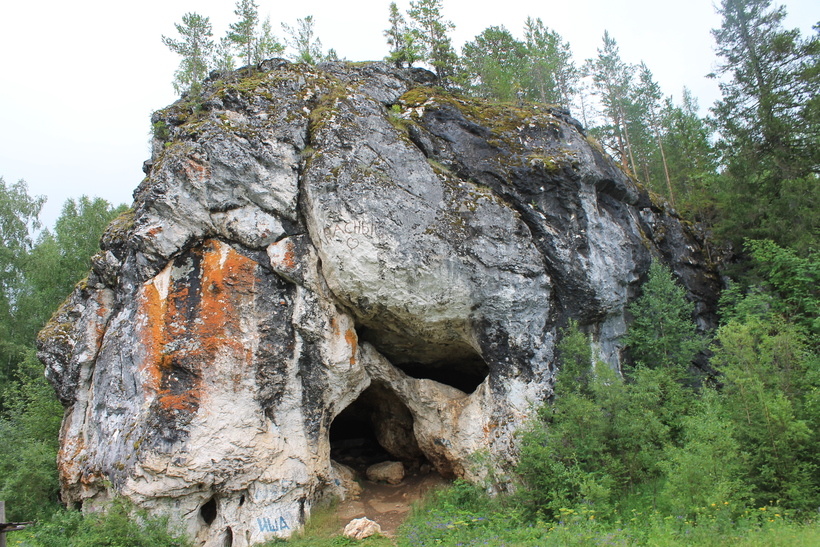 Скал в окрестностях Североуральска много, но эта прославилась экспедицией РГО, в которой принял участие немецкий ученый в XIX веке (в честь него и названа скала). Когда он изучал русский север, на ее вершине было много краснокнижных растений, которые в настоящее время, к сожалению, не смогут порадовать покорителей Урала. Зато вид оттуда на дачные поселки и лес захватывающий! Всего лишь 15 метров от земли, а такое ощущение, что ты на вершине мира! У основания скалы Грюнвальда есть 11-метровый грот. Раньше через него можно было добраться до лаза в Петропавловскую пещеру на территории храма Петра и Павла. Пещера протянулась чуть ли не по всей ширине города! Однако, говорят, после строительства Североуральска и взрывов грунта для фундаментов домов пещера под этим воздействием была засыпана. В прошлом году приличный кусок отвалился от скалы (известняк очень мягкий и хрупкий) и рассыпался на небольшие валуны, по которым любят карабкаться дети.