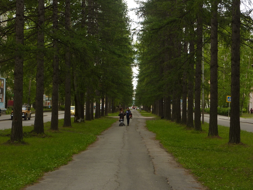 От него идет лиственничная аллея (улица Мира), которую невозможно не заметить. Если пойдете по ней и никуда не будете сворачивать, дорога вас выведет прямо на главную площадь города.