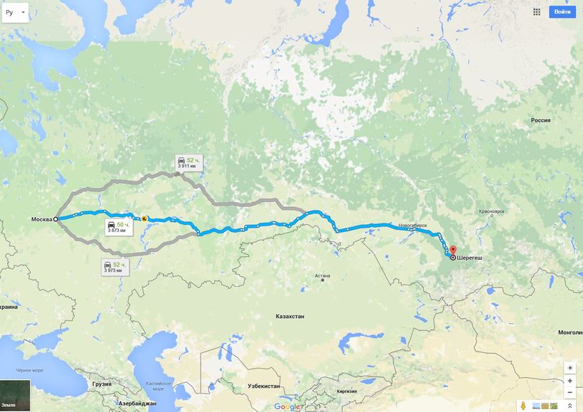 Время в пути – примерно 52 часа. Расстояние – почти 4 тыс. км.