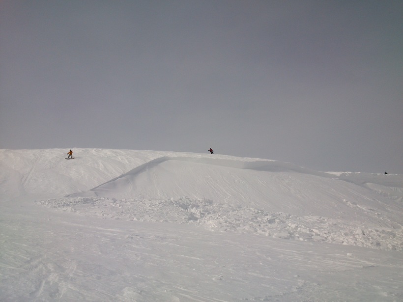Вот оно, самый благодатное время года в этом месте! Снега уже много, все склоны отратрачены, парк построен, так что любители горных лыж и сноуборда могут опробовать все стили катания: