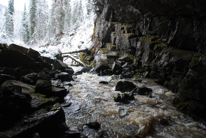 Хотя стоит быть аккуратным с ручьями: местами можно угодить в проталину и провалиться, так что сюда либо идти с кем-то, кто ориентируется в пространстве, либо быть очень аккуратным.