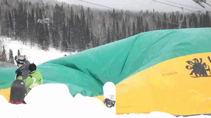 Кроме того, на основном склоне сектора а я видела подушку, куда можно упасть, вылетев с трамплина и крутанув в воздухе сальто или сделав какой-то другой элемент. Это что-то типа страховки для тех, кто хочет делать трюки, но не хочет приземляться на ноги. Некоторые даже не пытаются, так как такая подушка позволяет упасть на неё как попало, исполнив какой-нибудь зрелищный кульбит.
