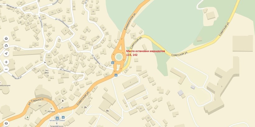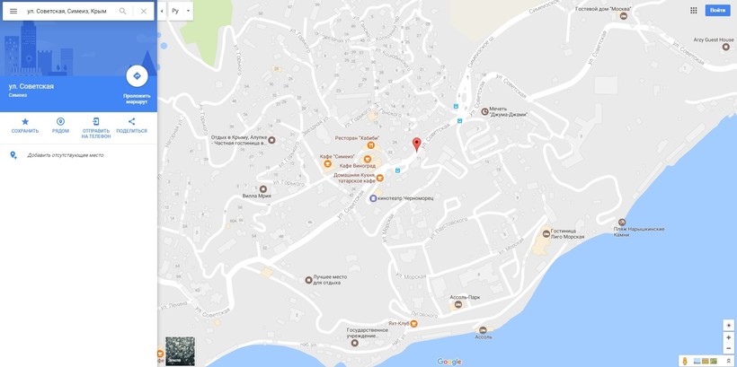 В Симеизе остановка этих маршруток находится на дорожном кольце в начале главной улицы поселка, основной туристической магистрали ул. Советской, до центра оттуда можно дойти за 15 минут.