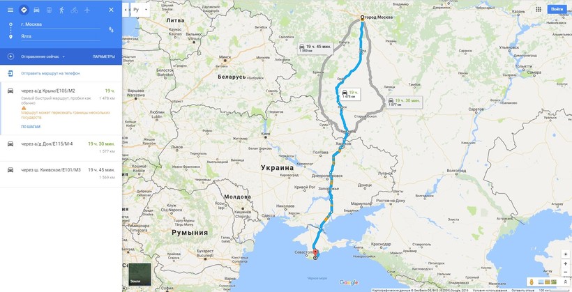 Дорога из Санкт-Петербурга займет около 30 часов. Есть варианты: ехать либо только через Украину, либо через Белоруссию и Украину. В среднем выходит 2 200 км.