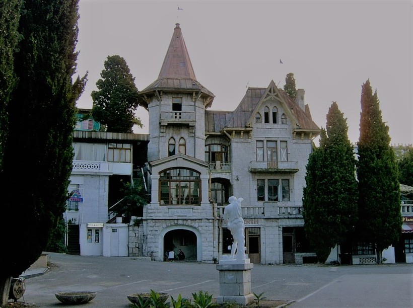 - ВиллыВ Симеизе находится много интересных архитектурных изысков. Каждый домик тут не похож на другой, и все они диковинные и необычные. Самые изысканные, безусловно, бывшие дачи аристократии, которые впоследствии были корпусами советских туберкулезных санаториев. Сейчас большинство из них в плачевном состоянии. Самые популярные среди туристов — это виллы «Ксения» и «Мечта». Они интересны именно своим внешним видом, остатками прежнего величия. «Ксения» давно превратилась в заброшенное здание с вывороченными внутренностями, а «Мечту» огородили, и туда не так-то просто попасть, но видно ее практически из любой точки Симеиза благодаря выгодному местоположению на пригорке (она на фото). Хотя находятся смельчаки, не боящиеся лазать через заборы, которые проникают на территорию виллы.