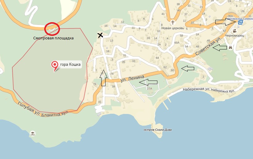 - От автостанции Симеиз (билет до автостанции 50-300 р), прогуляться вниз до Главной Аллеи, пройдя ее насквозь, вы окажетесь на развилке. Прямо – дорога к аквапарку «Голубой залив», направо – дорога к старой части Симеиза, вот именно она нам и нужна. Пройдя около 700 метров вверх по узким улочкам, выйдете прямо к склону горы Кошка. А дальше, по тропинке вверх, до главной смотровой на горе. Предупреждаю сразу, подъем будет не из легких.