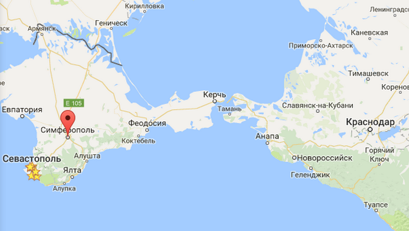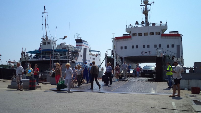 Паром причаливает в северо-восточной части Керчи, откуда до Симферополя следует ехать по трассе Е-97 около 213 километров.