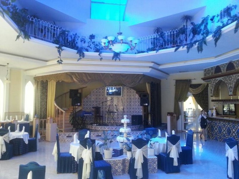 Здесь, прямо в центре заведения работает фонтан, кроме этого по вечерам можно насладиться живой музыкой. В меню предлагают: