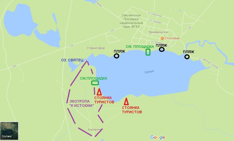 Если вас интересует «Смоленское Поозерье» целиком, то есть вы решили потратить несколько дней на его посещение, а не просто хотите посмотреть лишь одно озеро, тогда свой маршрут необходимо начинать с поселка Пржевальское. Кстати, сам населенный пункт стоит на берегу красивейшего озера Сапшо. Как добраться до поселка из Смоленска на автобусе и автомобиле я уже писал, гляньте тут.