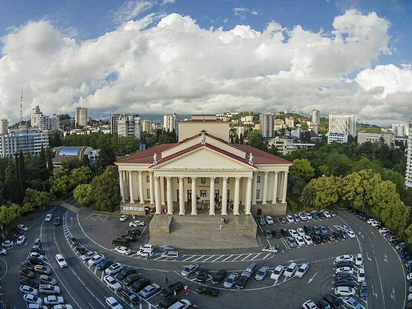 ЦУМ находится напротив железнодорожного вокзала Сочи.