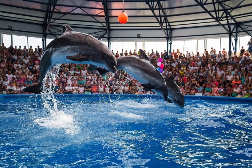 Яркое и красочное шоу проводится со вторника по воскресенье дважды в день — в 13:00 и в 16:00. Участие в нем, помимо дельфинов, принимают и другие животные — белухи и морские львы. Также все желающие могут поплавать с дельфинами или с китами. К плаванию допускаются дети от 3 лет.