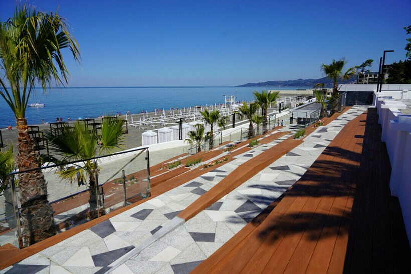 Пляж Ривьера в Сочи — бесплатный. Приходить сюда могут все желающие, за вход платить не нужно. Бесплатными для туристов также есть волейбольные площадки, детские горки, площадка для занятия йогой (доступна с 8 утра).