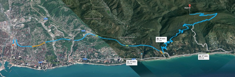 - Самый быстрый и удобный подъем будет на личном автомобиле. Займет он 30-50 минут по дороге А-147. На вершине имеются парковочные места, оставить автомобиль будет непроблематично;