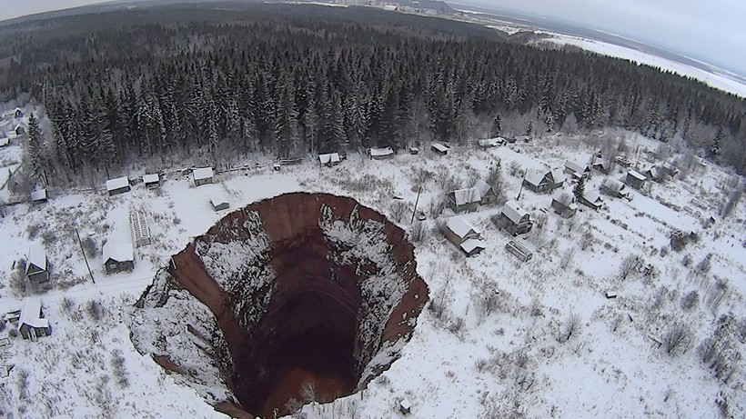 - Проседания грунта и техногенных землетрясений. Из-за выработок Верхнекамского месторождения калийных солей в городе время от времени появляются гигантские воронки.