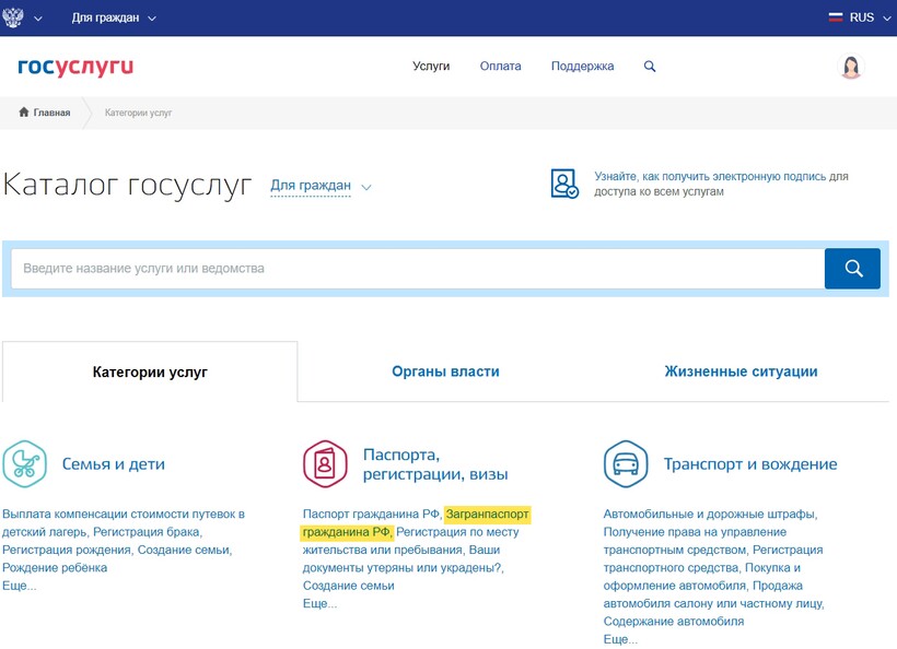 Чтобы произвести запись на загранпаспорт через сайт «Госуслуги», необходимо пройти регистрацию и подтвердить личность. Внесите в свой профиль СНИЛС и номер телефона: без них начать оформление будет невозможно. Далее в разделе «Услуги», в подразделе «Паспорта, регистрации, визы» выберите категорию «Загранпаспорт гражданина РФ» и следуйте инструкции.