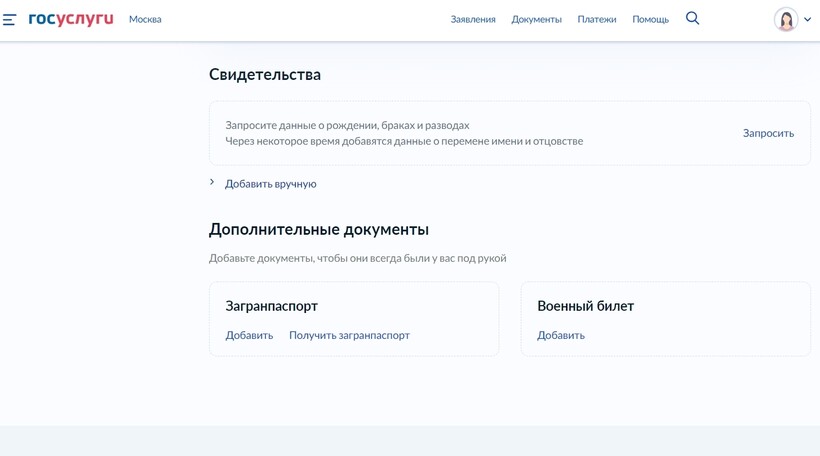 Данные заграничного паспорта можно добавить в свой профиль на «Госуслугах». Эта опция пригодится, если вы вакцинировались от COVID-19 и хотите, чтобы в электронном сертификате автоматически отобразились данные заграничного удостоверения личности. Для этого в «Личном кабинете» выполните следующие действия: