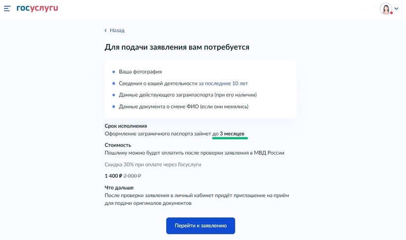 Таким образом, обращение за удостоверением личности путешественника через «Госуслуги» сэкономит вам время: вместо ожидания в очереди, вы заполните анкету онлайн в удобное время. Но факт того, что вы воспользовались услугами портала, не повлияет на сроки оформления самого документа.