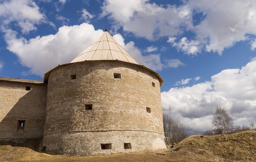 - У вас будет возможность увидеть круглую Климентовскую башню, имеющую 14 бойниц. Толщина стен у её основания — 9 метров, высота — 16 м.