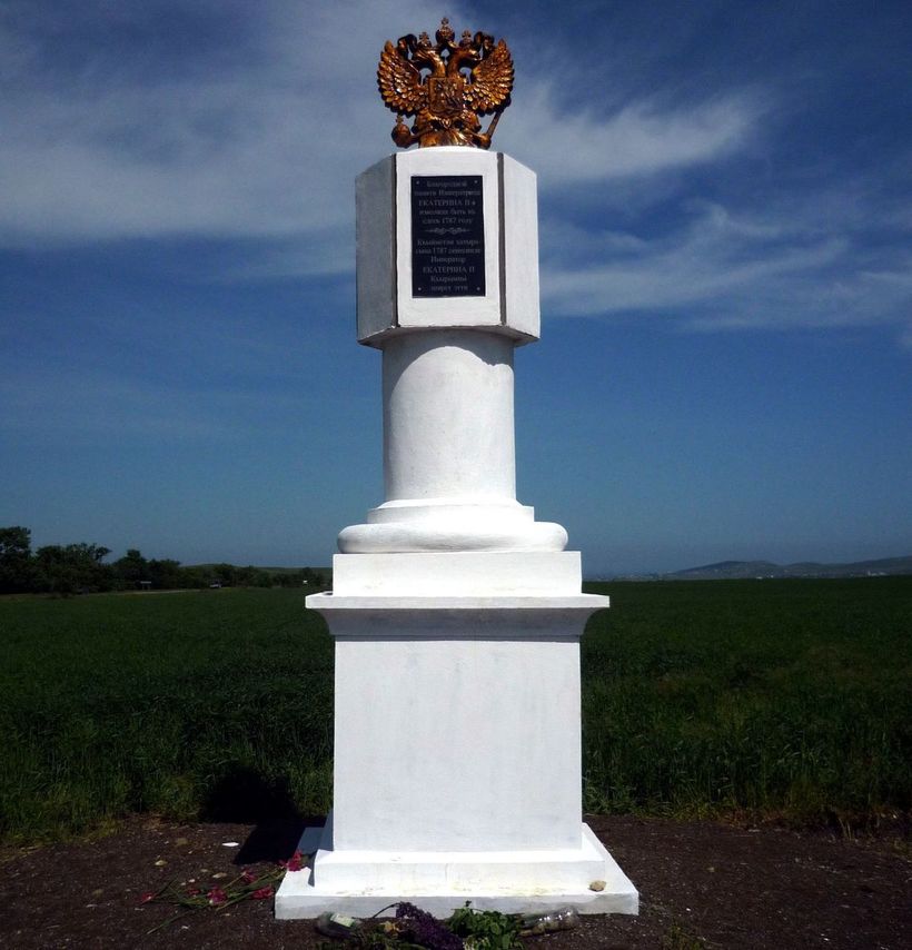 Она появилась на этом месте, когда императрица Екатерина II посетила ставший российским полуостров. Уже в наши дни какому-то злодею захотелось отыграться на этом невинном памятнике, и милю попытались разбить. Чтобы защитить это историческое достояние, повреждённый оригинал отвезли в литературно-художественный музей Старого Крыма, восстановили там и поставили во дворе музея, а там, где она была, поставили точную копию. Увидеть ее можно по дороге из Старого Крыма в Феодосию, приблизительно на полпути, у поворота на село Отважное (6 километров на автомобиле).