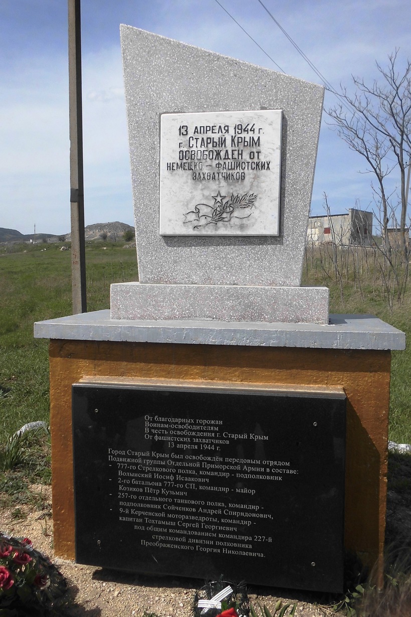На въезде (или выезде, кому как) из Старого Крыма есть и другой памятник, связанный со священным для города праздником – днем освобождения.
