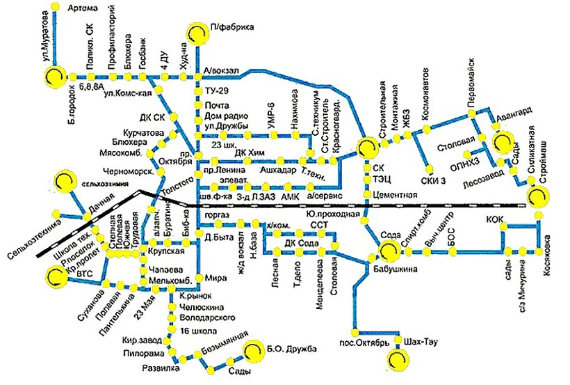 Передвигаться по Стерлитамаку легко и доступно, а также удобно. Маршрут общественного транспорта охватывает весь город (ниже на схеме можно посмотреть все остановки). Воспользоваться в городе возможно автобусом, троллейбусом, маршруткой или такси. На автобусе и троллейбусе стоимость билета – 12 руб., на маршрутном такси – 15 руб. Также по цене доступно такси. В одну точку стоимость – 60–80 руб, с одного конца города в другой – 120 руб.