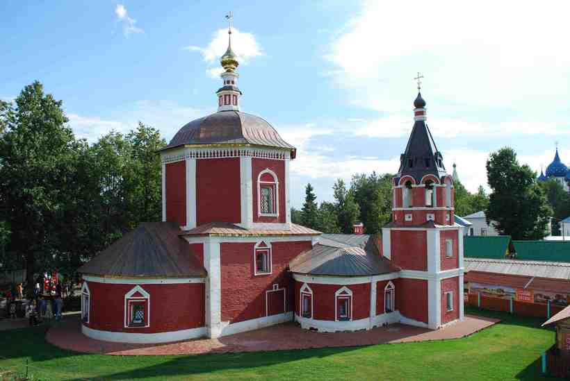 Это один из самых молодых храмов Суздаля, воздвигнутый в 1999 году. Изначально эта церковь была белокаменной, но сейчас она выкрашена в красный цвет. Церковь Новомучеников и Исповедников российских выдержана в традиционном для Суздаля стиле.