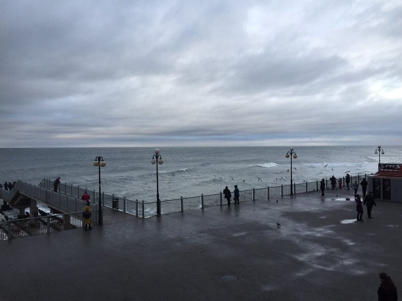 Под променадом сохранилась узкая полоска пляжа, часть которой отдана под платную зону (за лежак с мягким матрасом и полотенце попросят порядка 500 рублей).
