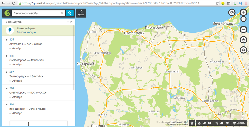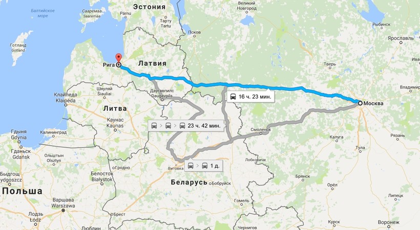 Прямых автобусных рейсов из России не существует. В высокий сезон, когда прямые авиабилеты дороги, с целью экономии можно купить билет до Риги, Вильнюса, Гданьска или Минска, а оттуда добраться автобусом до Калининграда, и только потом до Светлогорска. Ниже на скринах карты можно увидеть пример для варианта с Ригой.